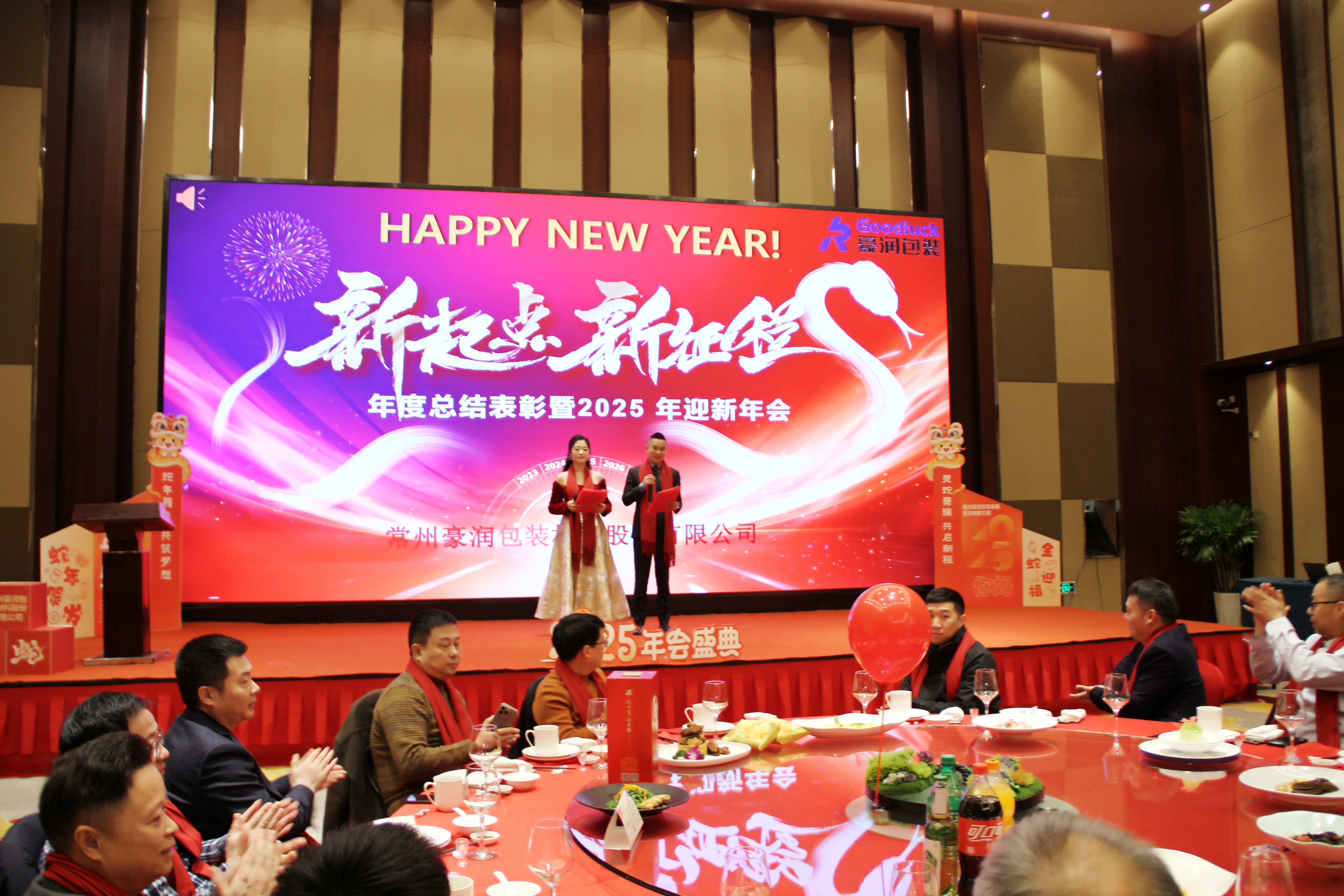 豪润包装 2025 年全体同仁欢聚一堂,以 “蛇行四海启新程,奋楫争先创辉煌” 为主题,在团圆氛围中总结过往、展望未来,凝聚起新一年奋进的力量。